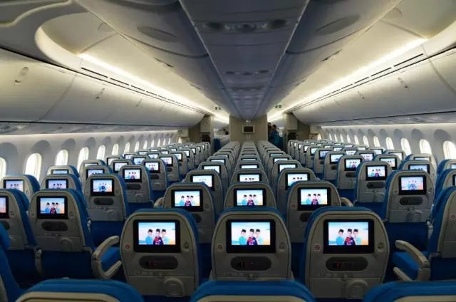 據(jù)介紹,B787-9可以搭載287名旅客,比B787-8的237個(gè)座位多出21%。在客艙布局方面取消了頭等艙的座位,改由30個(gè)商務(wù)艙和257個(gè)經(jīng)濟(jì)艙組成。