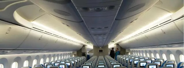 波音787-9型夢(mèng)想客機(jī)較其它機(jī)型擁有更大的舷窗,更充足的行李空間。